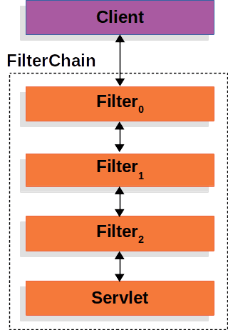 - Spring Security의 로직은 여러 개의 필터들이 나열된 필터 체인 형태로 구성되어 있다.